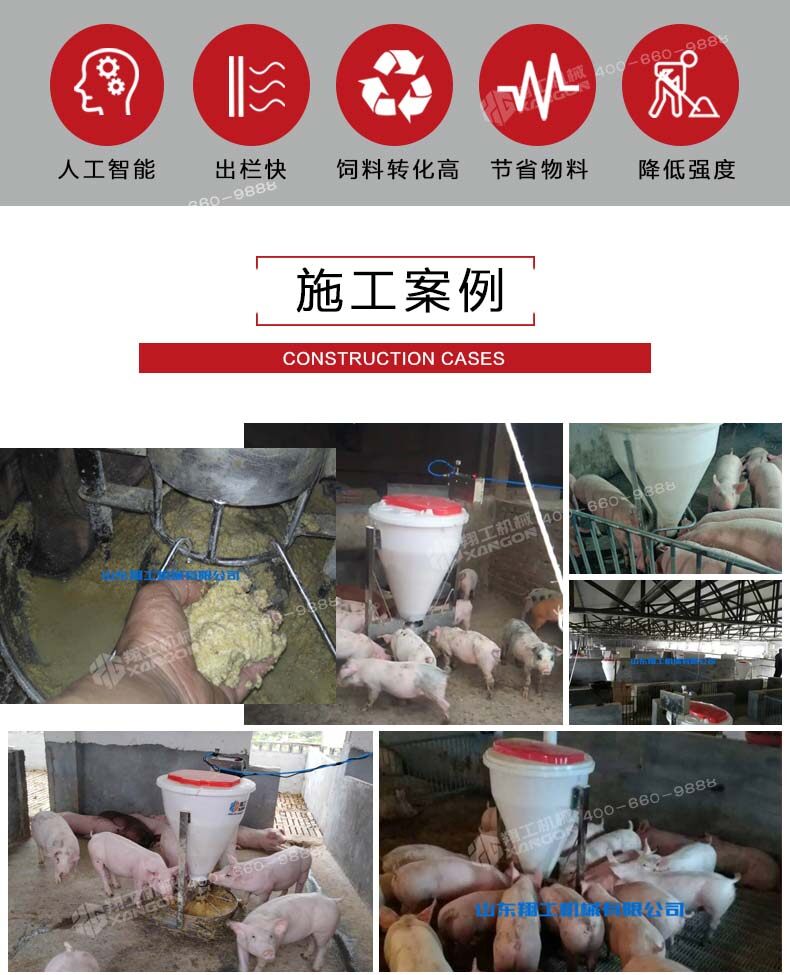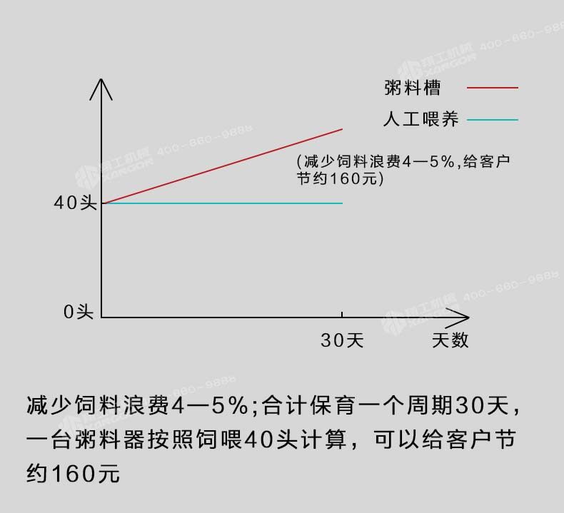 即便按照三個(gè)好處累加保育一次可以節(jié)約560元,一年按照使用粥料器保育6—8窩仔豬,累加一臺(tái)粥料器智能豬料槽通過在豬場(chǎng)的試驗(yàn)得出驗(yàn)證,解決了飼料轉(zhuǎn)化率,豬通過食料相比之前的飼喂每天多增重0.4斤,減少和杜絕了胃腸道病的發(fā)生幾率。合理采食的同時(shí)減少了飼料的浪費(fèi),省料即是省錢,普通的飼喂飼料浪費(fèi)率在5%-10%,豬場(chǎng)中使用了粥料器后飼料浪費(fèi)率控制在2%左右。減少人員的勞動(dòng)強(qiáng)度,夜晚無法定量投喂的問題。