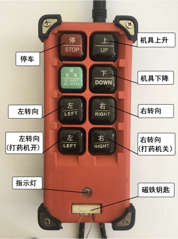 注:遙控器在使用過程中,電池的電量會(huì)影響實(shí)際控制距離,提醒用戶注意檢查,及時(shí)更換電池(2節(jié)五號電池),長時(shí)間不用應(yīng)將磁鐵鑰匙取下,避免跑電。