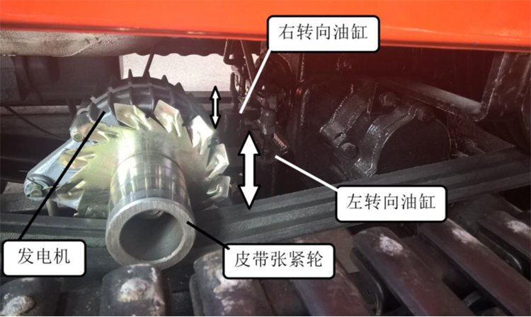 注意:左、右轉(zhuǎn)向油缸頂桿單獨(dú)推出,控制左、右轉(zhuǎn)向;同時(shí)推出為臨時(shí)停車;直線行走時(shí)油缸收回;調(diào)整發(fā)電機(jī)拉桿漲緊皮帶。